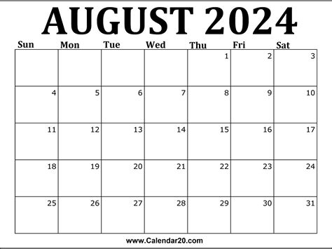 Calendar 2024 Printable Augest 2024 Calendar with Holidays Calendar Quickly