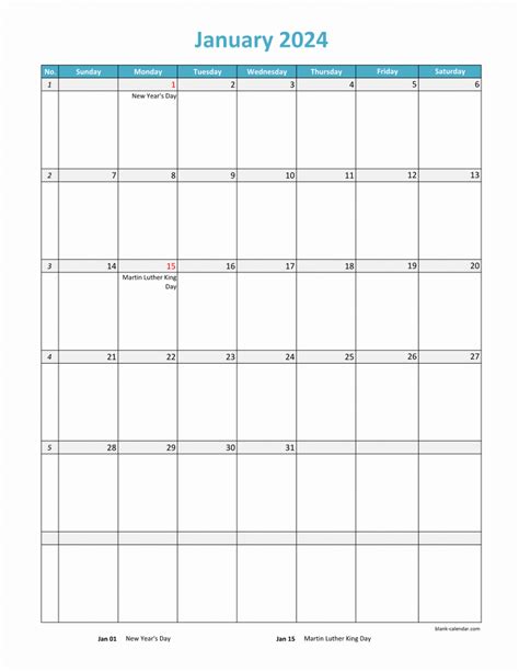 - 2024 excel calendar template with public and federal us holidays.