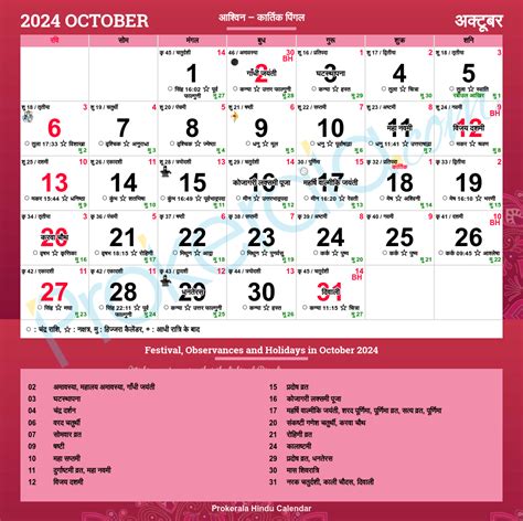 Oct 2024 Hindu Calendar