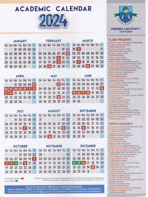 Puc Calendar 2024